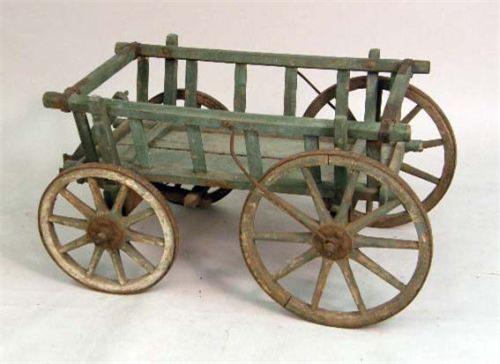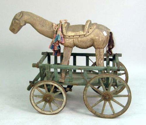 Together with a paint-decorated wagon, losses, 24"h x 36"w