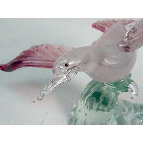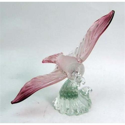A PINK AND COLORLESS GLASS FIGURE OF A SEAGULL<BR><BR>Possibly Murano, wear, 11"h