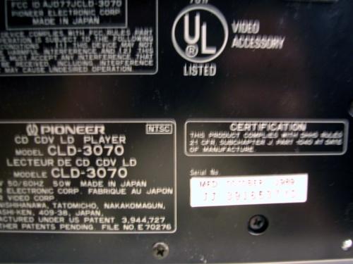 A PIONEER LASER DISC PLAYER Model #CLD-370, 1989, together with three laser discs, "Hoffa", "Ironweed", and "Die Hard 2