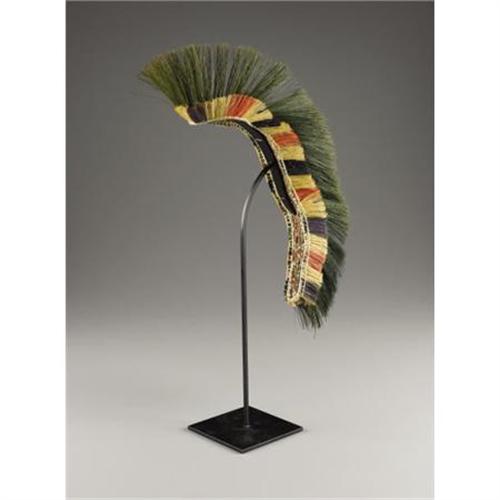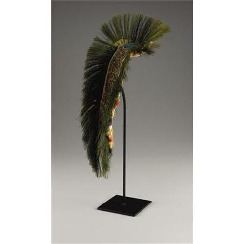 <B>A PLAINS HAIR ROACH<BR></B></I><BR>c. 1930 composed of natural, red, green and purple-dyed fibers, metal stand<BR><BR>Length: 14 1/2 inches <B>Condition Report:</B> Overall very good. Pigment with fading. No apparent restoration.<BR><BR><b>Shipping:</b> Requires 3rd Party Shipping (<a target="_blank" href="http://www.heritageauctions.com/common/shipping.php">view shipping information</a>)