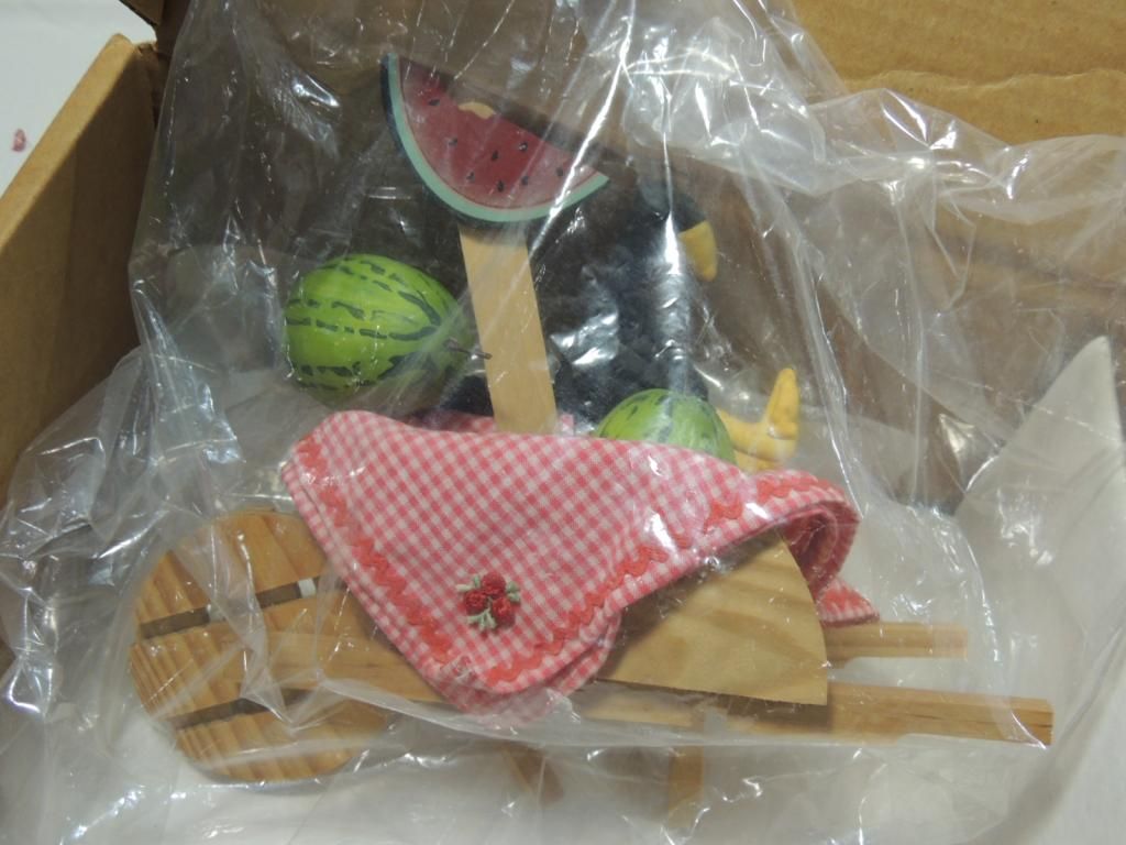 PITTSBURGH ORIGINALS A PLAYMATE TODAY A TREASURE TOMORROW. "THUMPER" DOLL. 14" TALL WITH WATERMELON CART. AS SHOWN. SEE PHOTO FOR MORE DETAILS. IN ORIGINAL BOX. GREAT CONDITION. LIKE NEW.