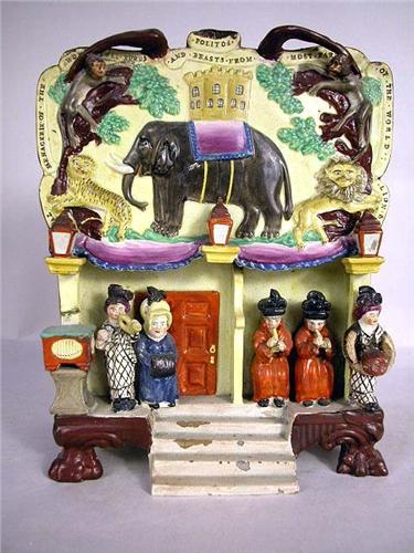 A POLITOS FIGURAL GROUP; Titled "Royal Menagerie of the Wonderful Burds and Beasts From Most Parts of the World," 11 1/2"h losses