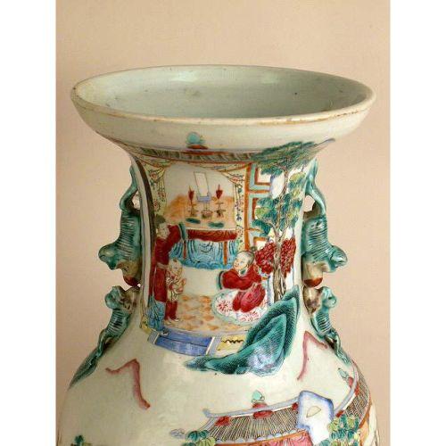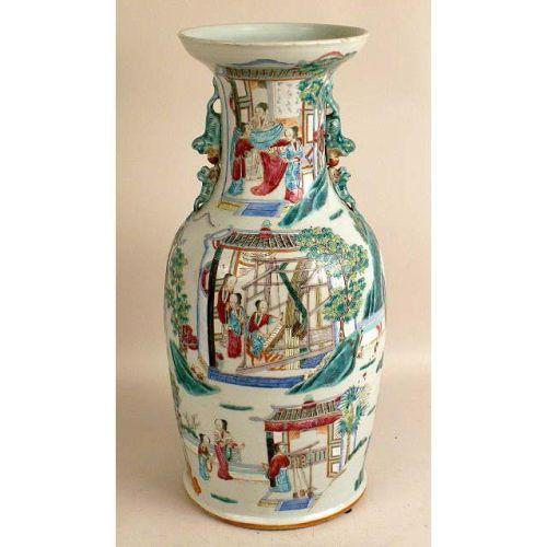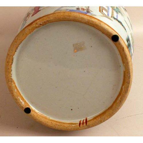 A POLYCHROME AND FIGURAL-DECORATED CERAMIC VASE<BR><BR>Chinese, some wear and small chip, 17 1/2"h x 7 1/4"dia.