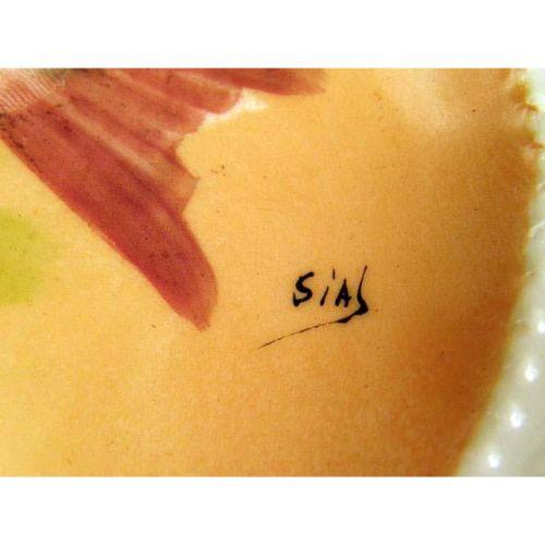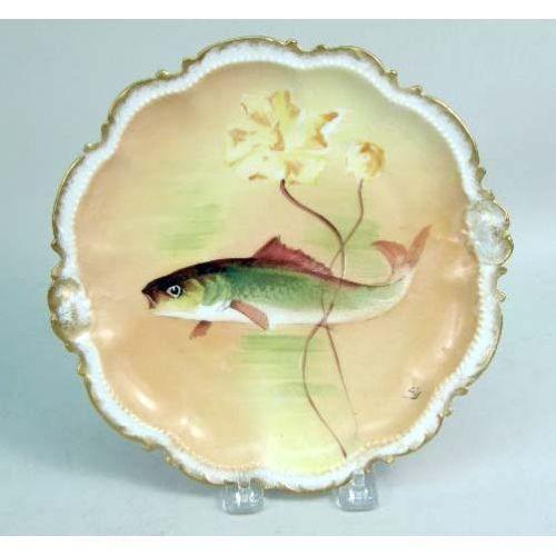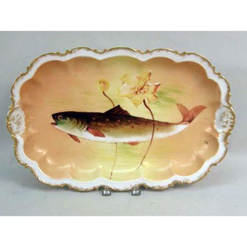 A POLYCHROME AND PARCEL-GILT DECORATED PORCELAIN FISH SERVICE<BR><BR>Handpainted and signed, marked underside Comte D`Artois, Limoges, France, Platter: 16 3/4"l