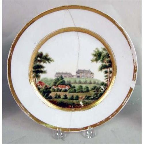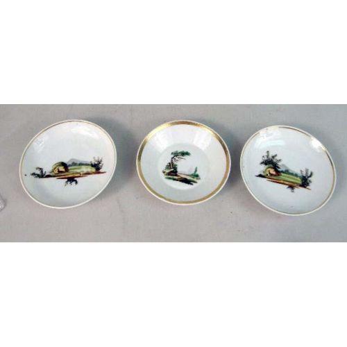 A POLYCHROME AND PARCEL-GILT DECORATED PORCELAIN PARTIAL TABLE SERVICE<BR><BR>Possibly French, including three each, lunch plates, and demi-tasse cups and saucers, repairs, wear, and losses