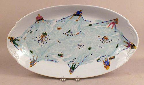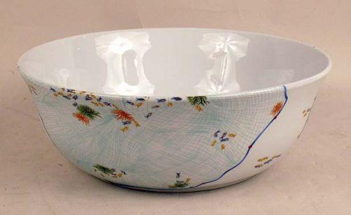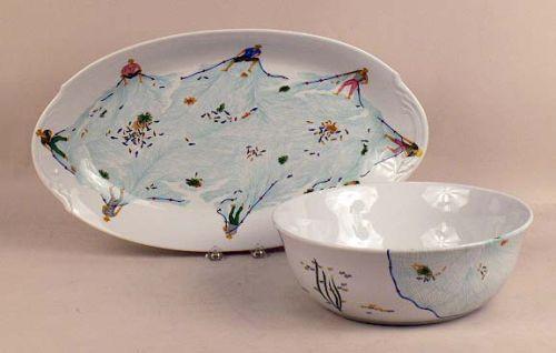 Underside marked Phillippe Deshovlieres, fishing motif, platter, 20 1/2"l, bowl, 12"dia.