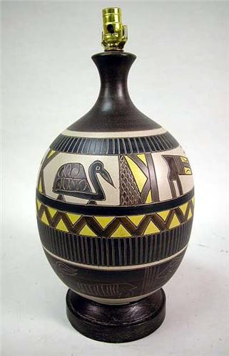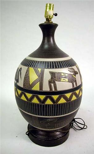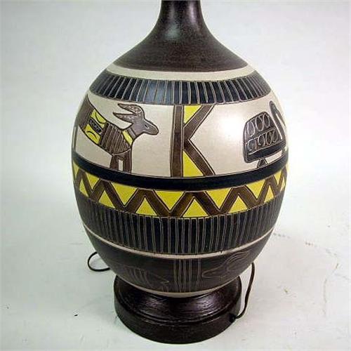 A POLYCHROME DECORATED CERAMIC TABLE LAMP 23"h