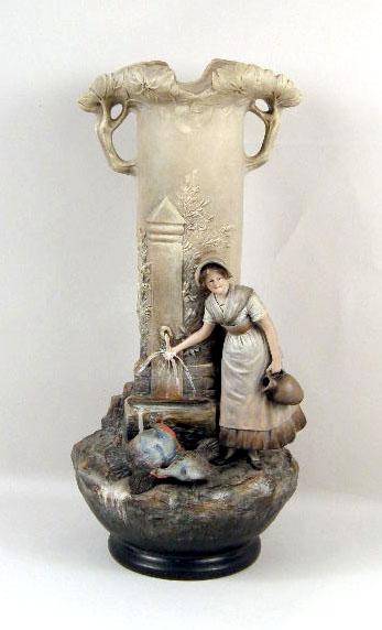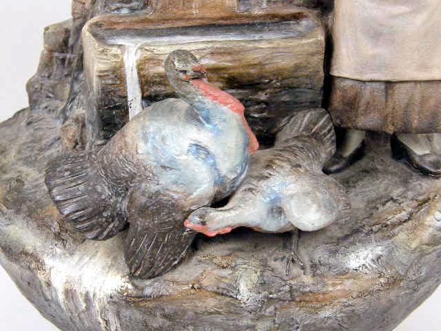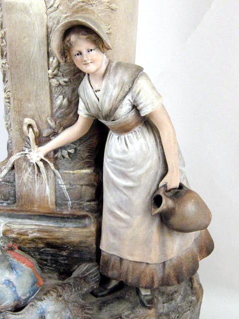 Continental, stamped "Austria, 1803" depicting a girl at a well with turkeys underfoot. 25"h