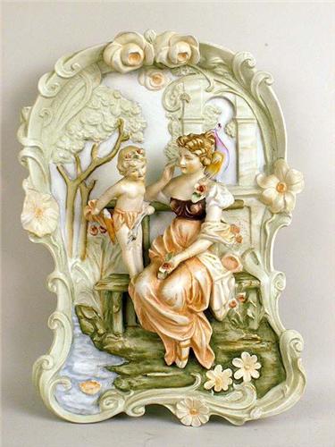 Depicting a mother and child in relief, 11"h x 8 1/2"w