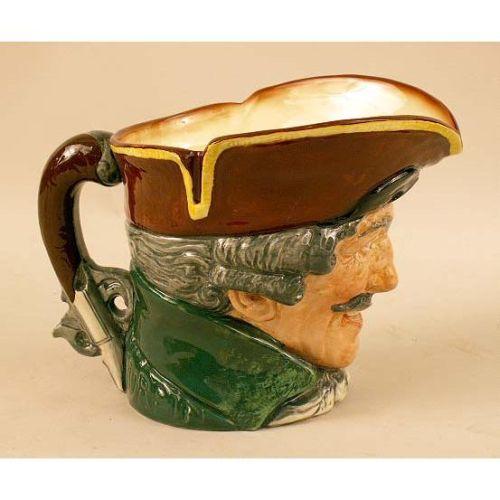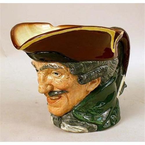 A POLYCHROME DECORATED TOBY PITCHER<BR><BR>Marked underside Royal Daulton, England, inscribed Dick Turpin. Together with a cast pewter mug, inscribed Crown Rose, made in England