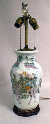 Chinese, decorated with figures and animals, now fitted as a lamp. 26"h.