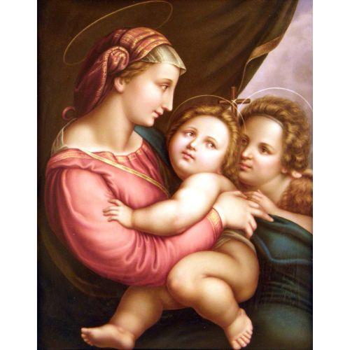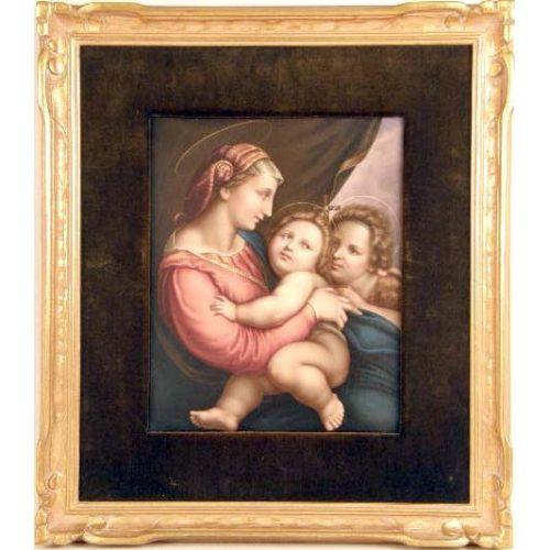 A PORCELAIN PLAQUE DEPICTING JESUS CHRIST, MARY AND JOHN THE BAPTIST<BR><BR>possibly after Julio Ramano (1499-1546), marked Rarhoel (sp?), framed, 12-3/4"h x 10"w
