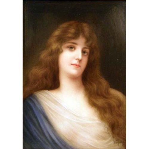 A PORCELAIN PLAQUE OF A WOMAN WITH LONG HAIR<BR><BR>signed Wagner, lr, impressed KPM, 311 on verso, 6-1/2"h x 5-1/2"w