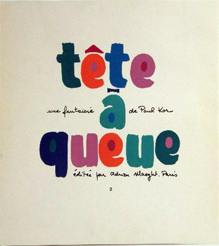 By Paul Kor, titled "Tete a queue." Together with a program for a "Soiree" November 1951, limited edition #200/950, and calligraphy pages. 3 pieces 14 1/2"h x 13"w and 15"h x 10"w