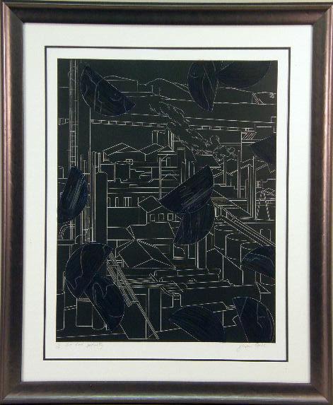 (American, b. 1943), Susan Hall, titled "Art & Industry". 30 1/2"h x 24"w