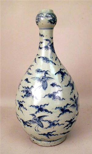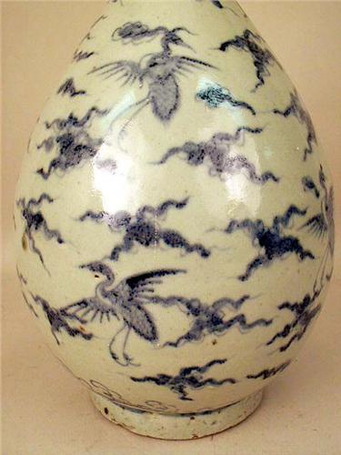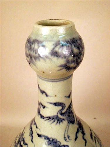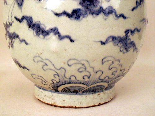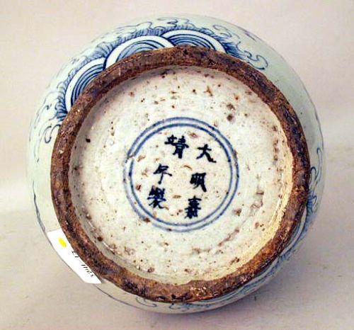 Chinese, possibly Ming Dynasty, the underside marked with six characters within two blue circles. Some chips to foot and imperfections to glaze. Approximately 16"h.