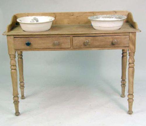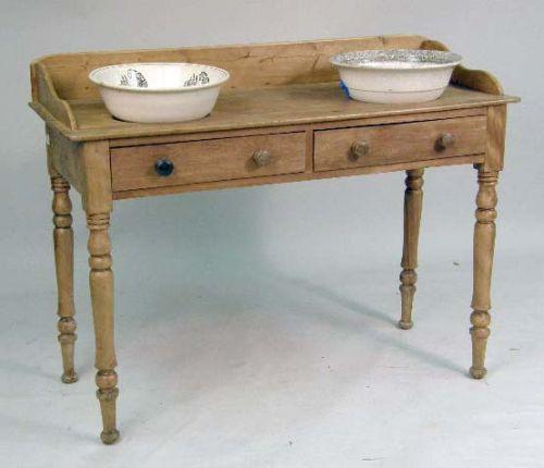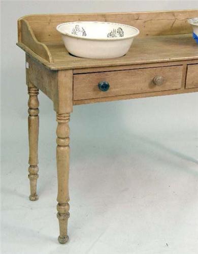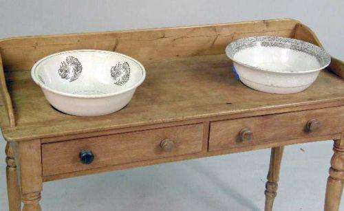 English or Irish, wear, replacements, and worm damage. Together with two brown transfer decorated ceramic basins (cracks and losses) 36"h x 4`w x 19"d