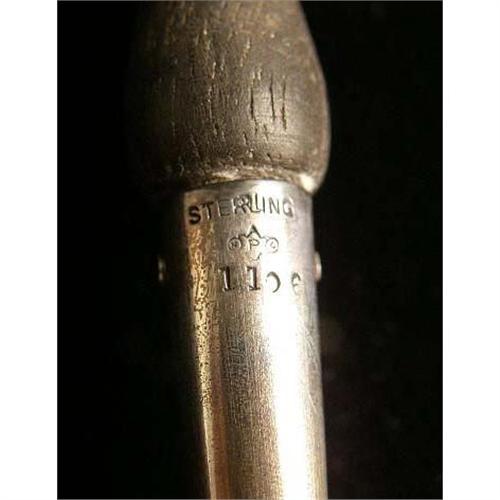 A PRYOR MFG CO., NEWARK STERLING SILVER WOODEN HANDLED TEA STRAINER