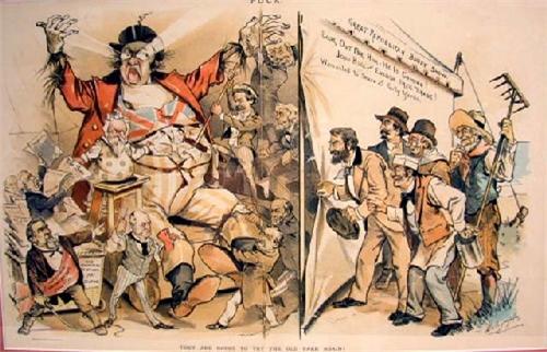 A PUCK COLORED PRINT; "They are Goint to Try the Old Fake Again", signed in print lr. Halrymple, J.Ottmann Lith. Puck Building NY, 11-1/4" x 19-1/4", matted and framed, creased