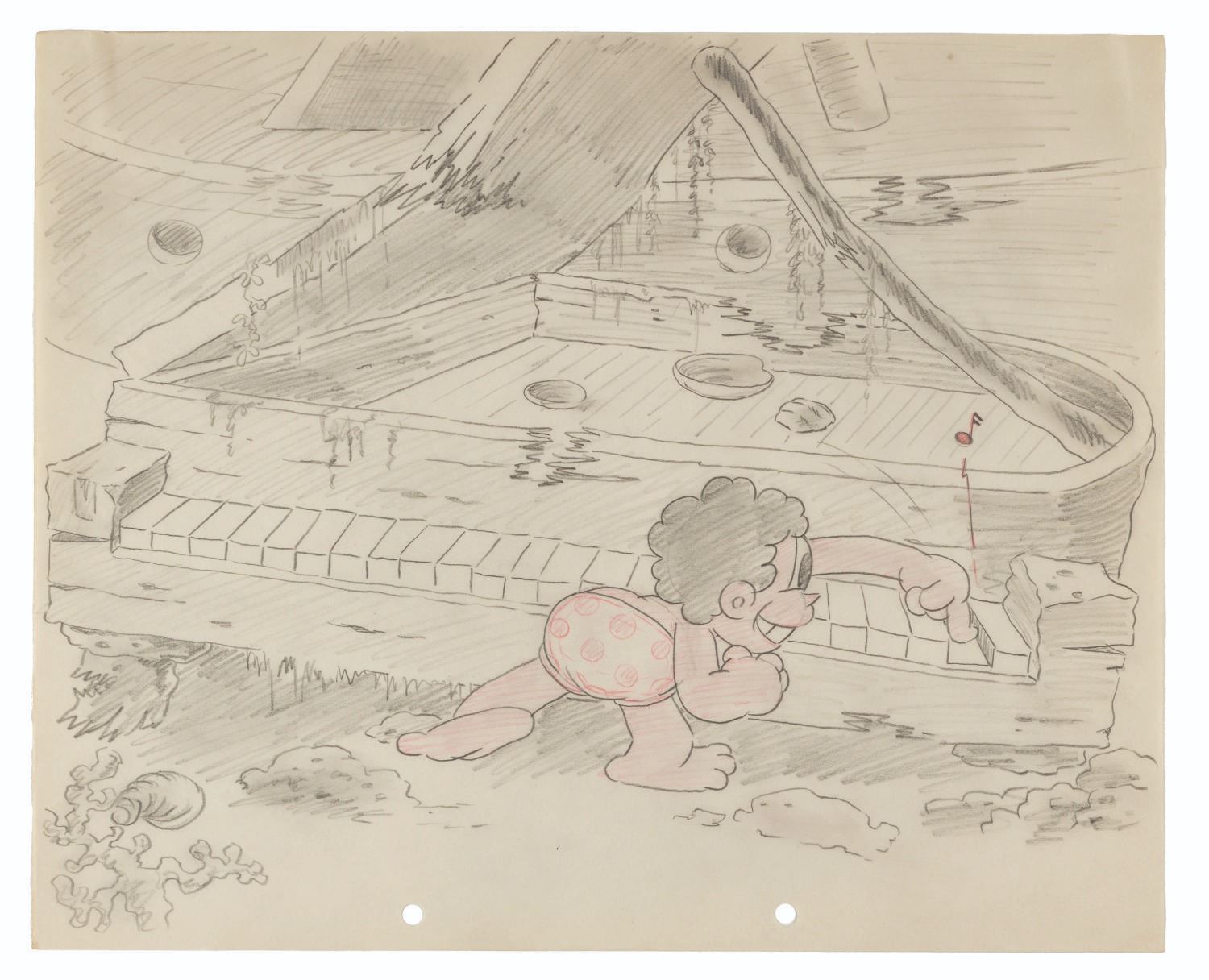 (Harman-Ising, 1932) An original storyboard drawing of the Island Boy from the Merrie Melodies short “Pagan Moon.” Accomplished in graphite and colored pencil, the drawing measures 9.75” x 12” and is in very good condition with light edge wear and creasing from production use, and light discoloration from age.