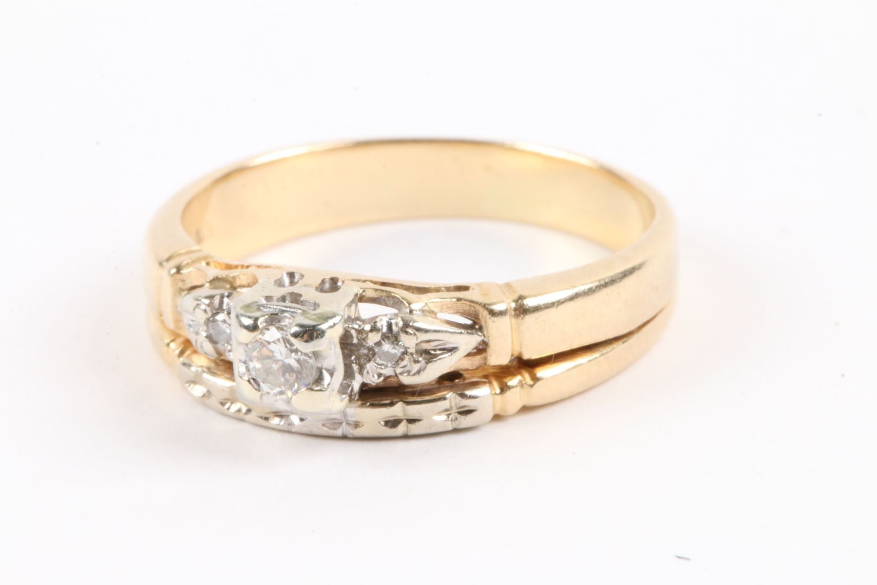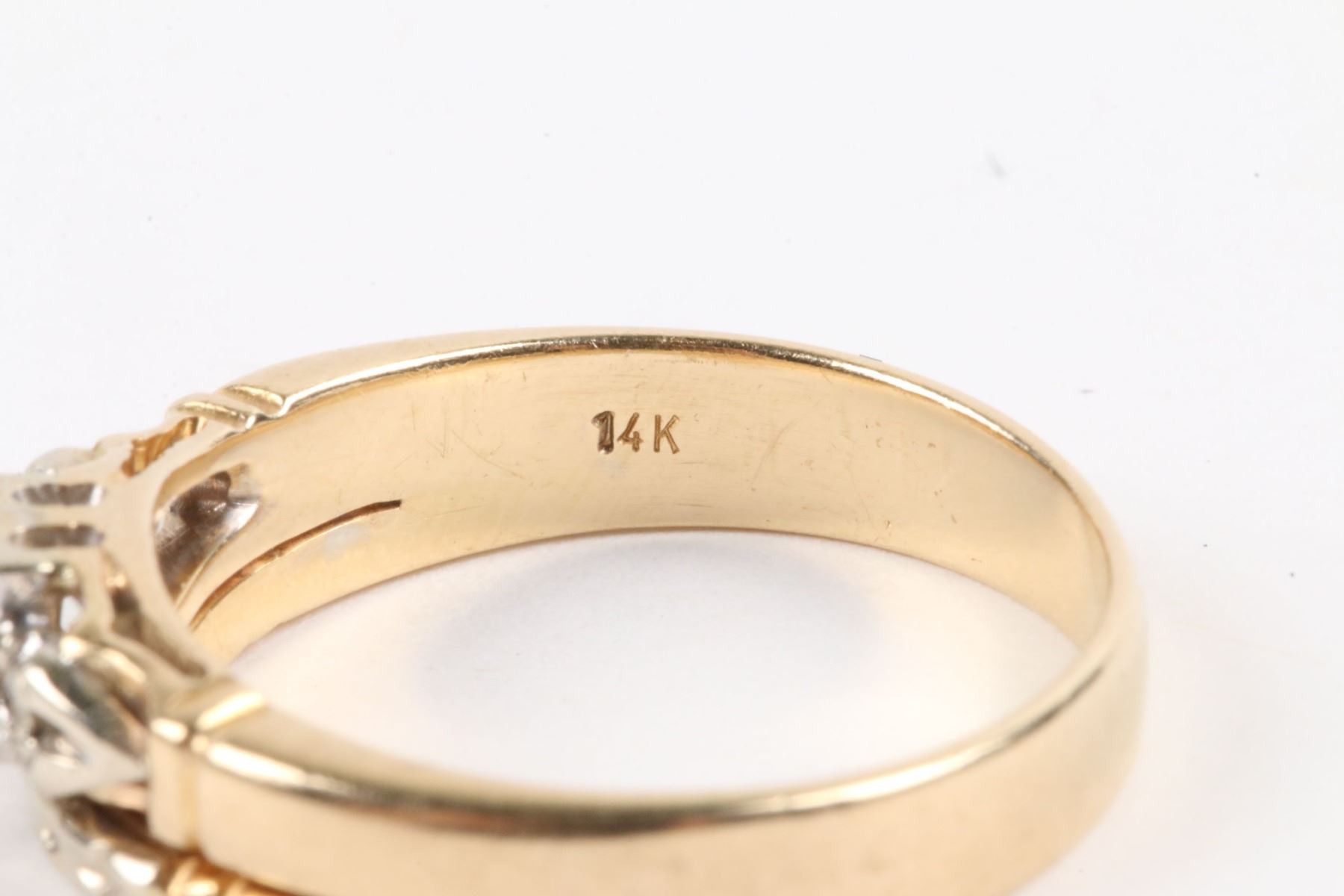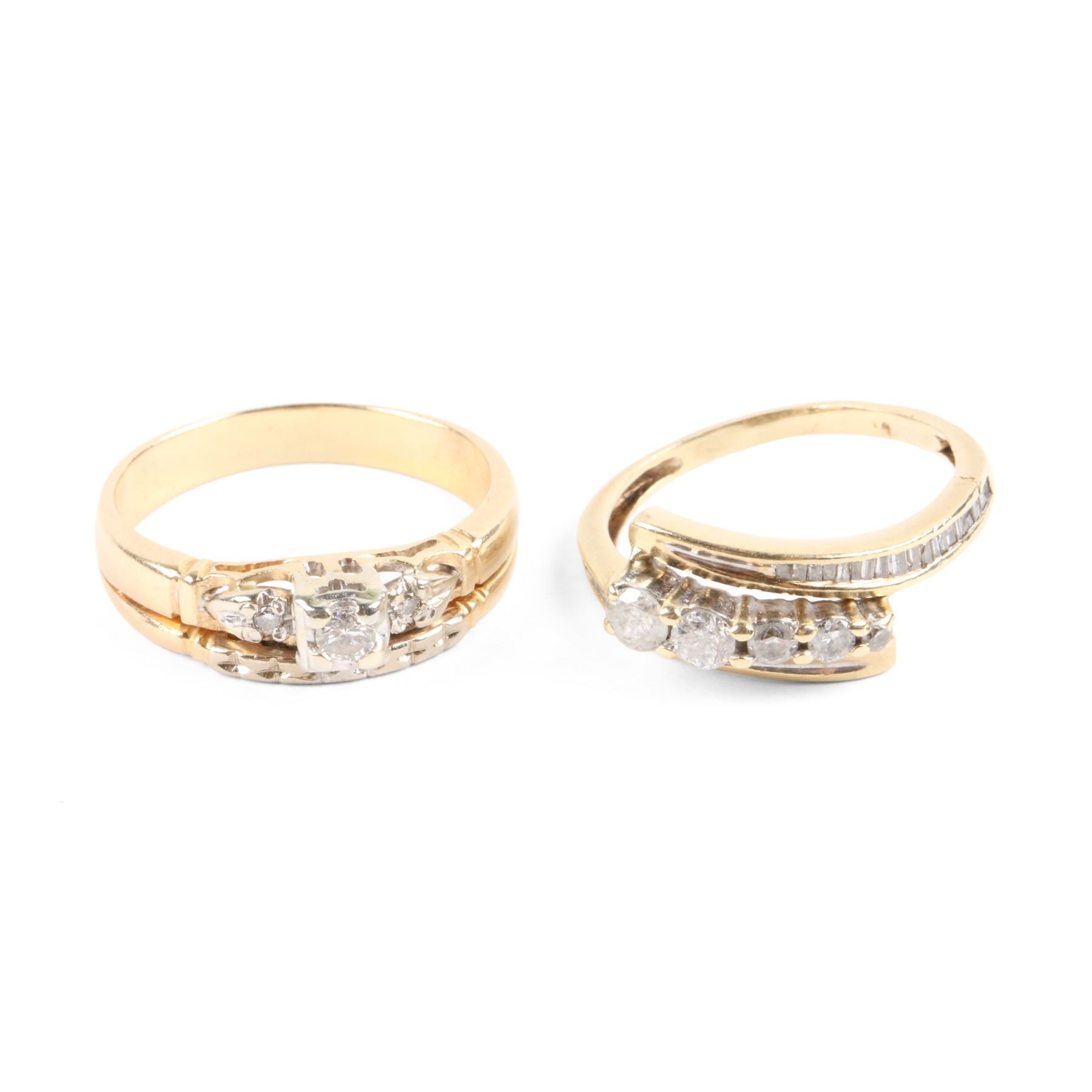 QUANTITY: 2. MEASUREMENTS: Size 9; Size 9. GROSS WEIGHT: 8.69g. NOTES: One ring is broken . Marked "14K", inner bands. Est. $200-300.