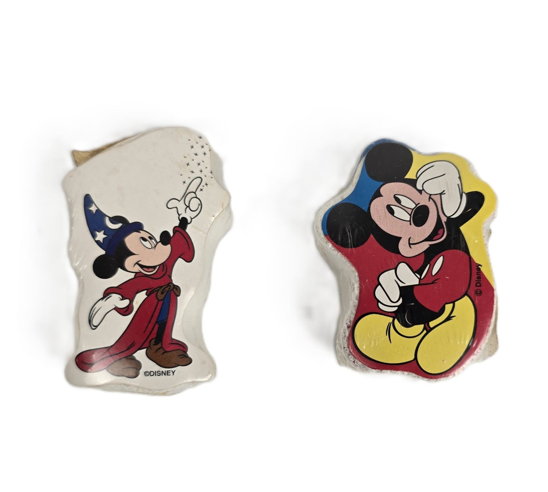 This is a pair of Mickey Mouse magic towels. They are unopened with the original tags. The packed size is 2" x 2" x 1". The towels are 12" x 12" after being soaked in water. This set has a Classic Mickey and a Mickey face one. The total measurement is 2" x 2" x 2" and weighs 2 oz.
