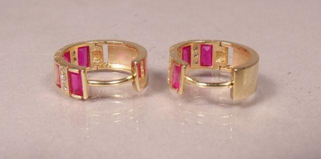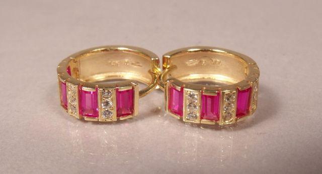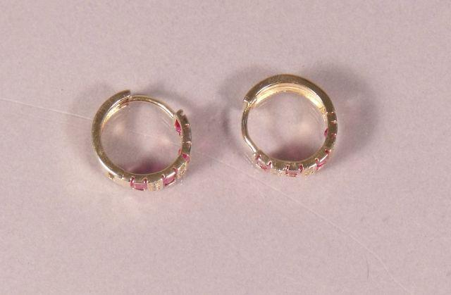 A Pair of 14 kt Yellow Gold, Red Spinel and Zircon Mini Huggie Earrings, Item weight 2.9gms.