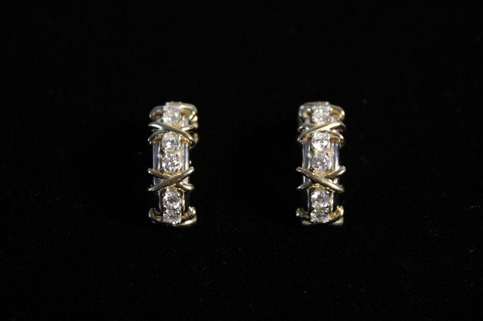 A Pair of 14kt. Yellow and White Gold and Diamond X-Form Earrings,