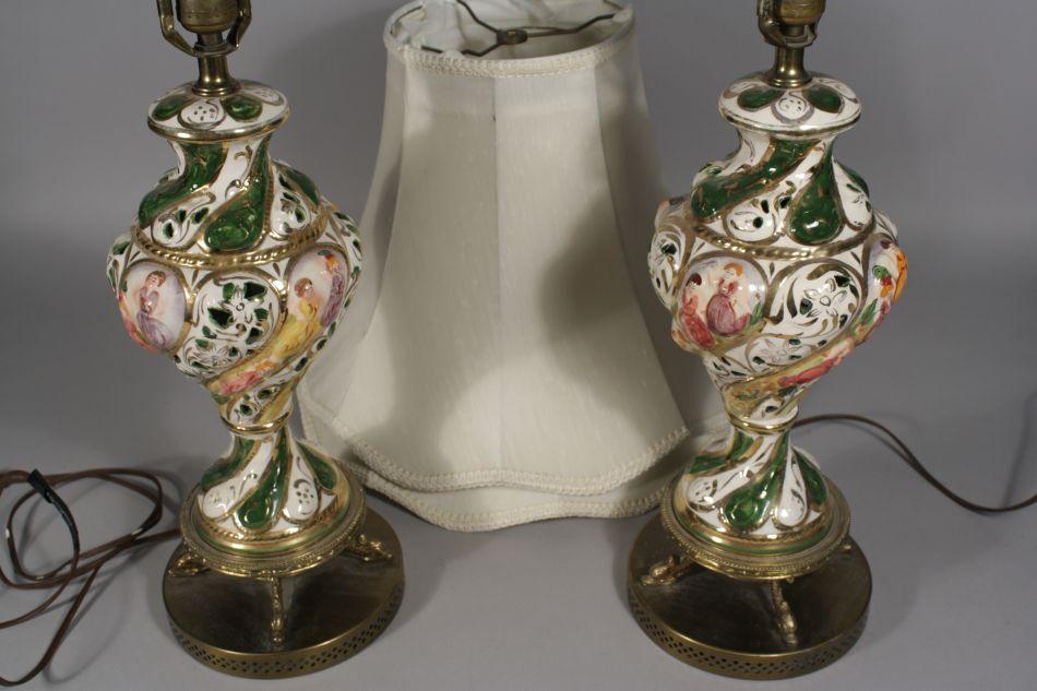 A Pair of 20th Century Capodimonte Porcelain Table Lamps.