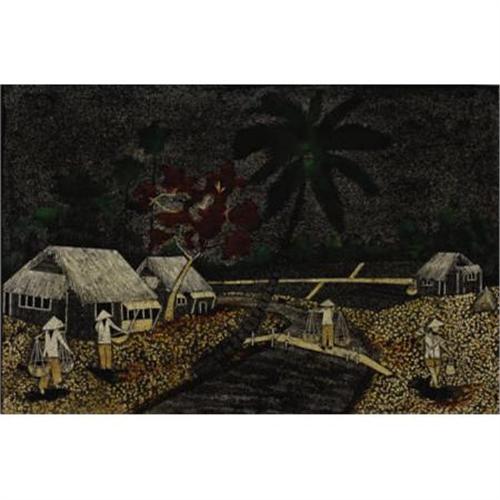 <B>A Pair of Asian Lacquer Panels<BR></B></I>Unknown maker, possibly Vietnam<BR>Twentieth Century<BR>The panels depicting homes and boats executed with crushed eggshell stained for effects on a black lacquer ground<BR>Unmarked<BR>15.7 inches high x 23.2 inches wide<BR><BR><b>Shipping:</b> Requires 3rd Party Shipping (<a target="_blank" href="http://www.heritageauctions.com/common/shipping.php">view shipping information</a>)