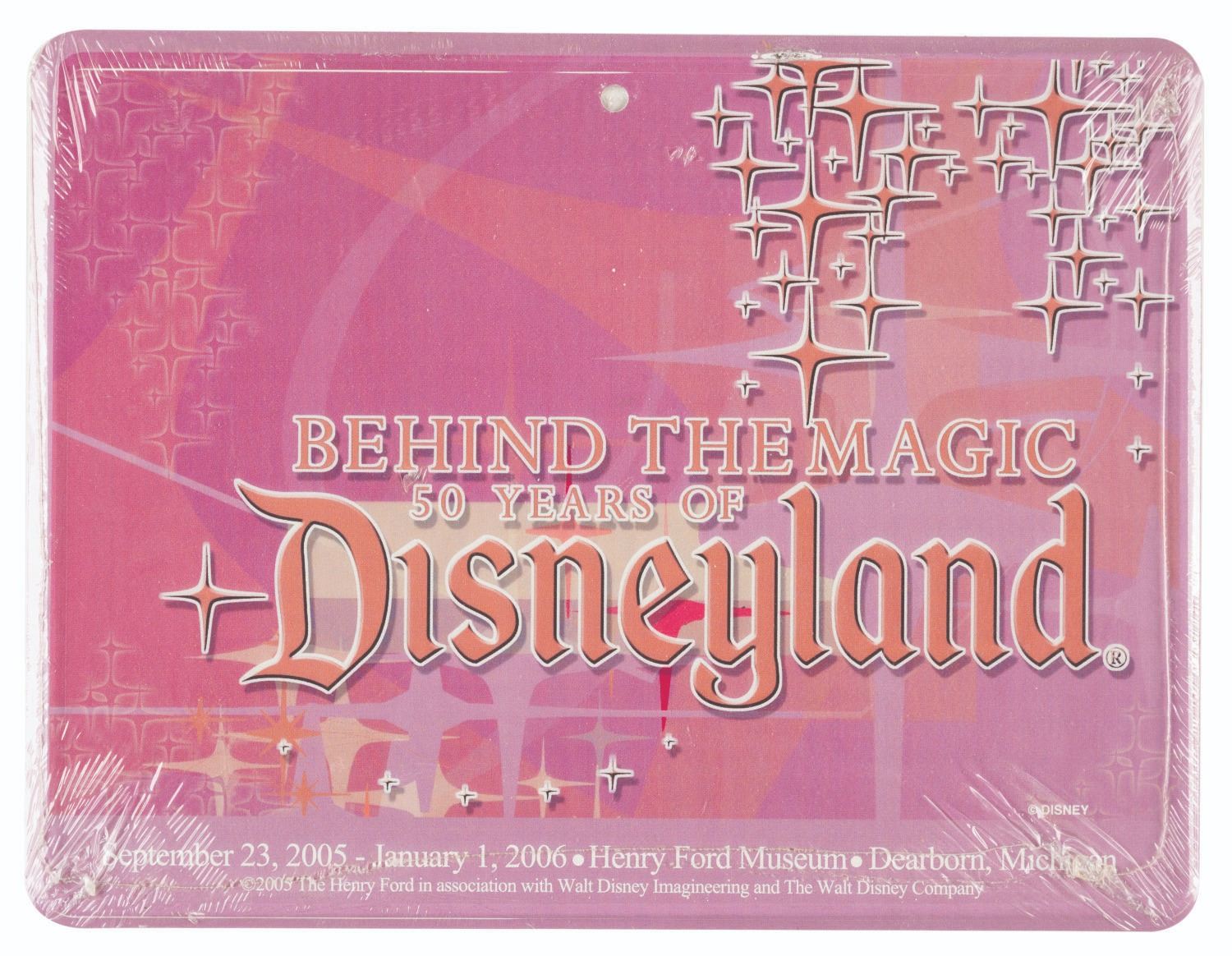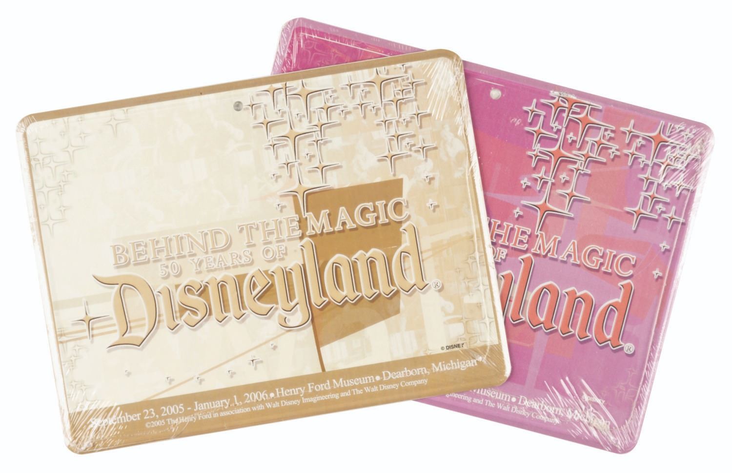 (Henry Ford Museum, 2005) A pair of oversized commemorative license plates for the"Behind the Magic 50 Years of Disneyland" exhibit at the Henry Ford automotive museum. Each measuring 8.5" x 11" the metal signs are in fine condition.