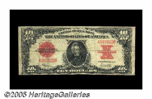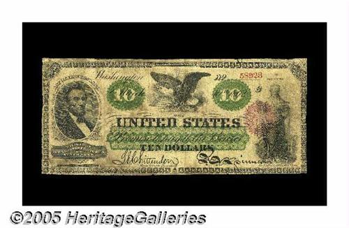 <B>A Pair of Better $10 Legal Tender Types</B></I><BR>Fr. 94 $10 1862 Legal Tender VG<BR>Fr. 123 $10 1923 Legal Tender VG-Fine.<BR>