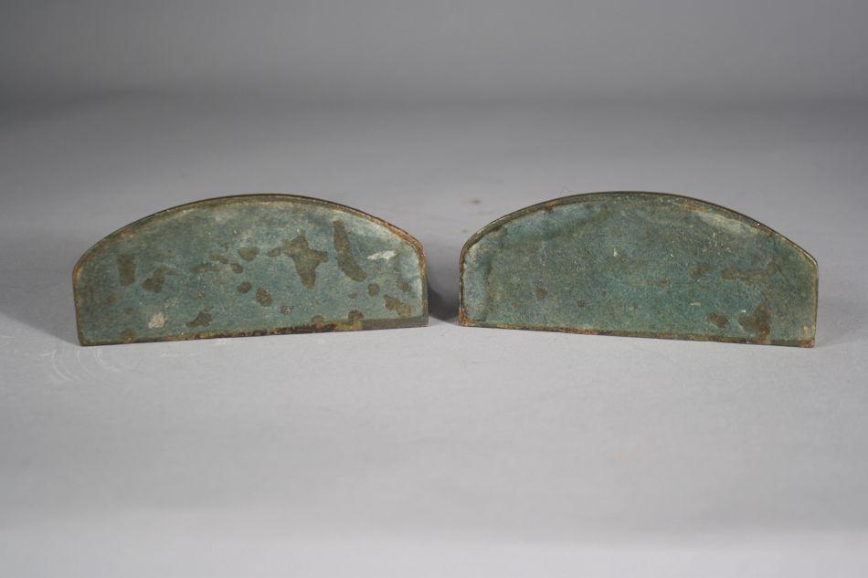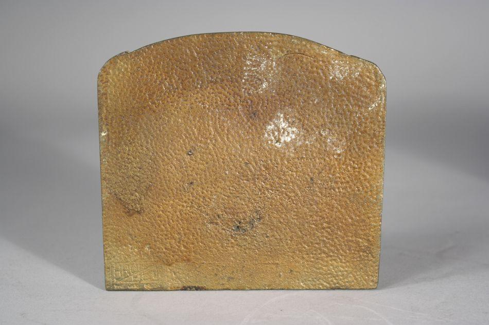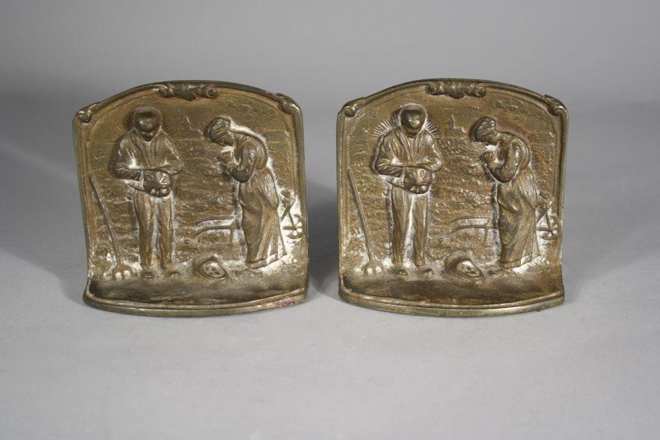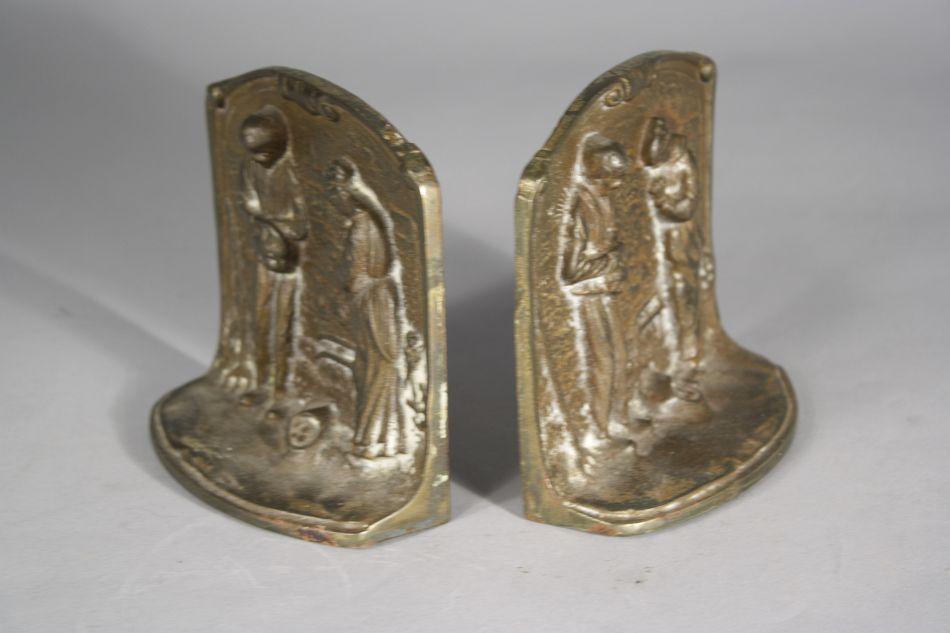 A Pair of Bronze Bookends Depicting Figures Praying.