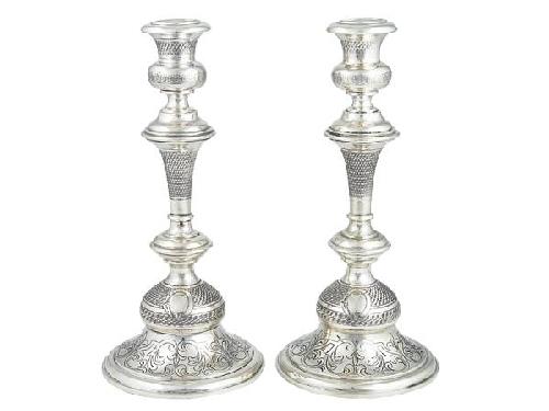 Silver, 485 g. Round base, stem divided with rings, guilloche decoration on the surface. Marked: Vienna, circa 1880 Size: 27.5 cm