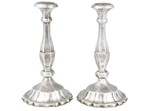 Silver, 547 g. Round base with lobed border. Vase form stem with guilloche decoration. Slightly dented. Marked: Pest, 1866, Teschlag József. Brestyánszky: 174, 328. Size: 29.5 cm