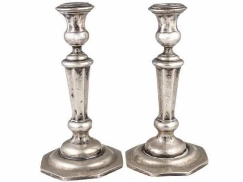 Silver, 430 g. Stepped base, stem and candle cup divided into eight parts. Marked: Kassa, 1848, Carolus Frölich. Koszeghy: 841, 908. Size: 22 cm