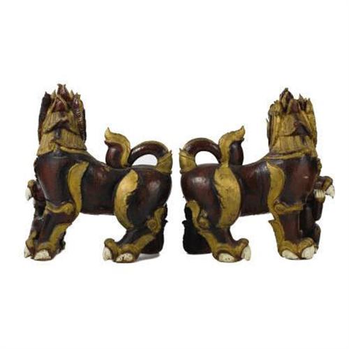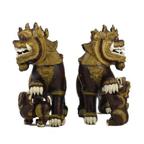 A Pair of Chinese Carved Temple Dogs