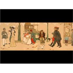 A Pair of Coloured Prints, by Tom Browne, A Paris Boulevard I & II 26 x 70 cm See illustration (part)