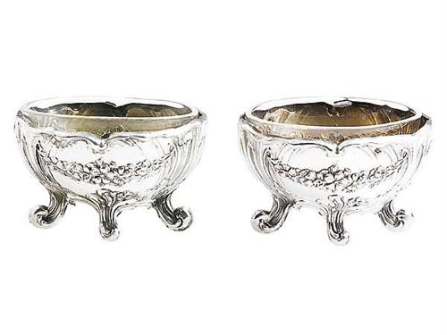 Silver, 19 g, gilt interior. Oval form raised on four supports, pressed neo-rococo decoration, replaced glass linings. Marked: French, circa 1860, P R maker’s mark in lozenge. Rosenberg: IV/5880. Size: 3.5 cm