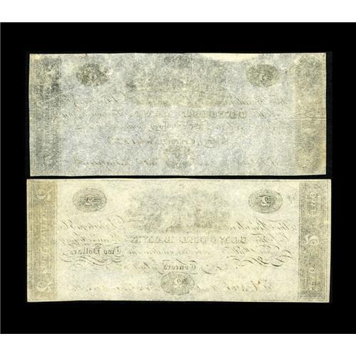 <B>A Pair of Counterfeits.</B></I><BR><B>Concord, NH- Concord Bank</B></I> $2; $5 1821; 1820 C40; C76<BR>The little bit of handling these counterfeits show suggest they never entered circulation. <B>Choice About Uncirculated.</B></I>