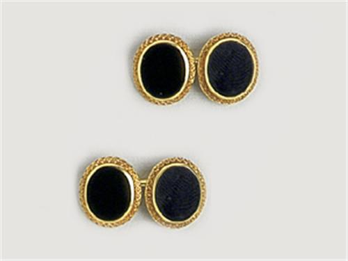 14 K gold, buttons with oval onyx, circa 1930, unmarked, weight: 7.3 g, in good condition.