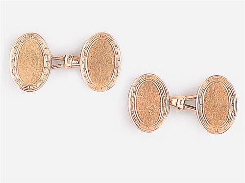 14 K gold, oval form buttons, spring hook, circa 1930, marked, weight: 8.0 g.