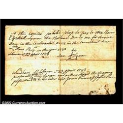A Pair of Daniel Lyman Financial Documents. Lyman was an Aide-de-Campe to General Heath, and served.