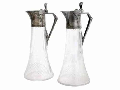 Blown and cut tintless glass, silver-plated with pewter handle and cover. Marked: W.M.F. Würtembergische Metallwaren Fabrik, circa 1900 Size: 27 cm