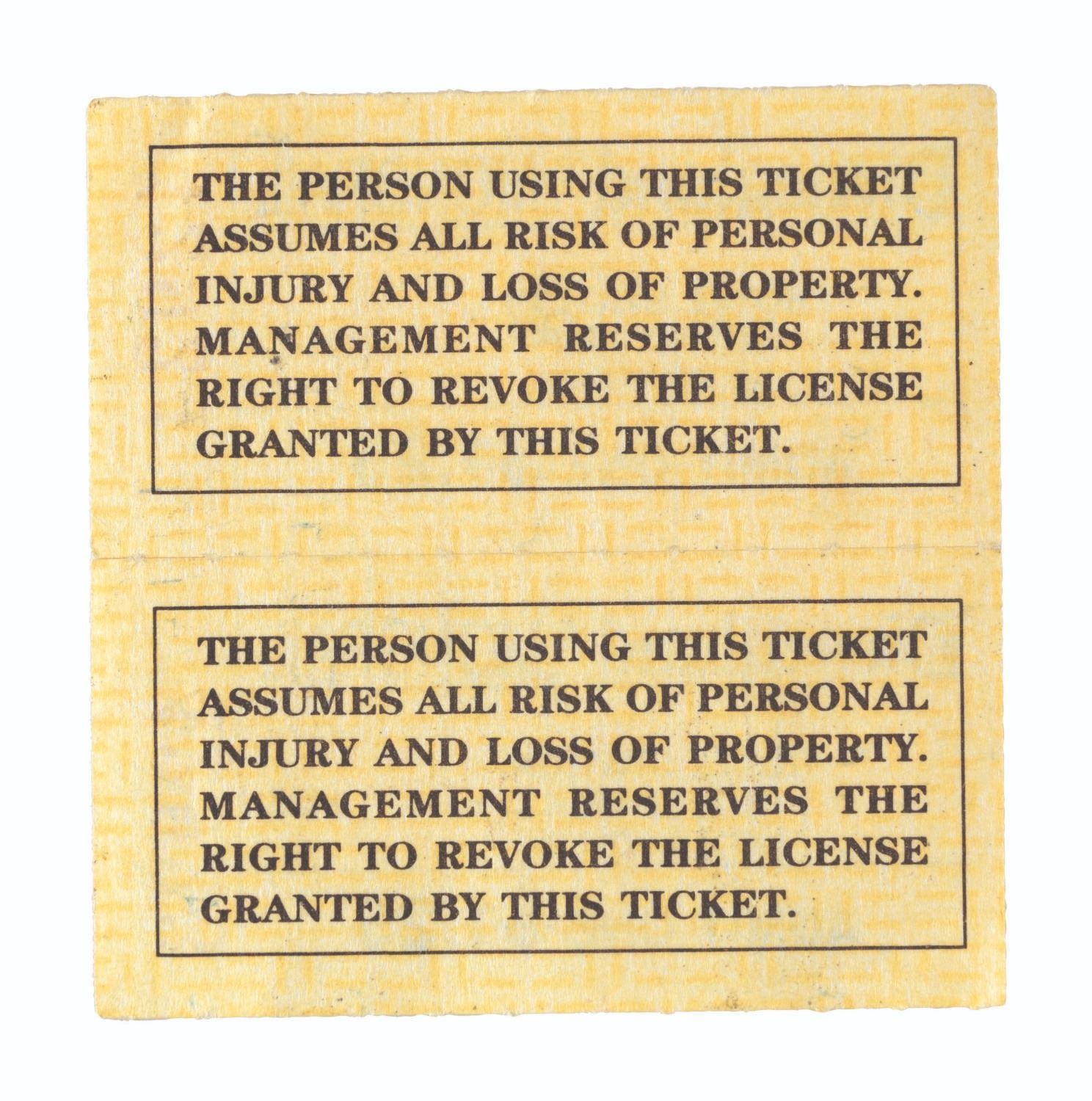 (Disneyland, 1960s) A pair of rare early tickets for a Hotel Station round trip on the Disneyland Monorail, with no admission to the Park at Tomorrowland Station. Measuring 0.75" x 2" each, the tickets are attached at the perforation and display in very good condition with light edge wear.