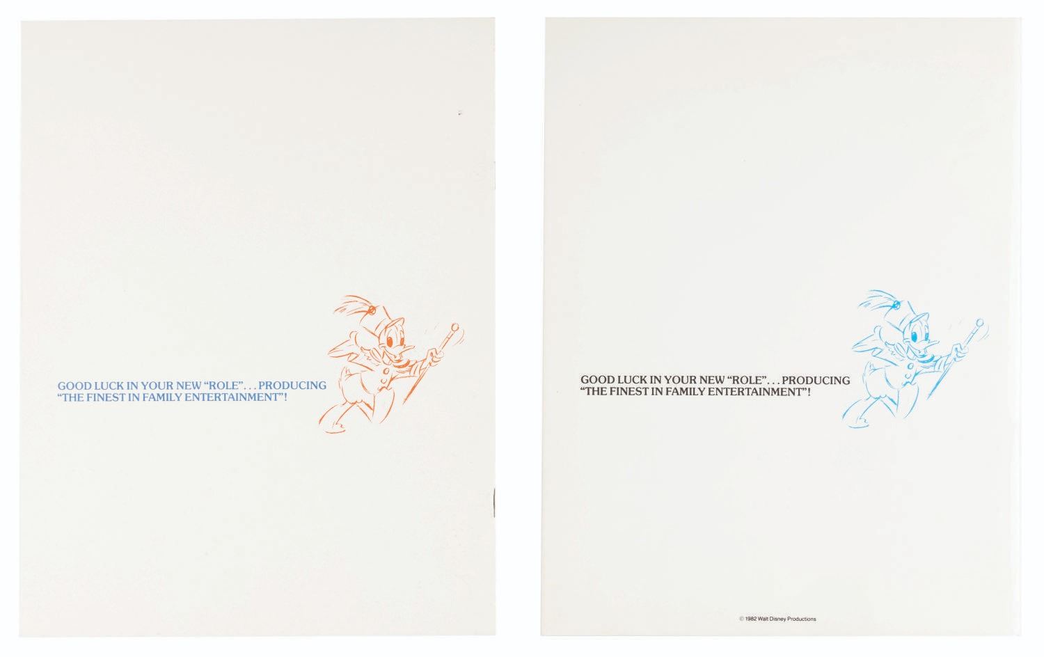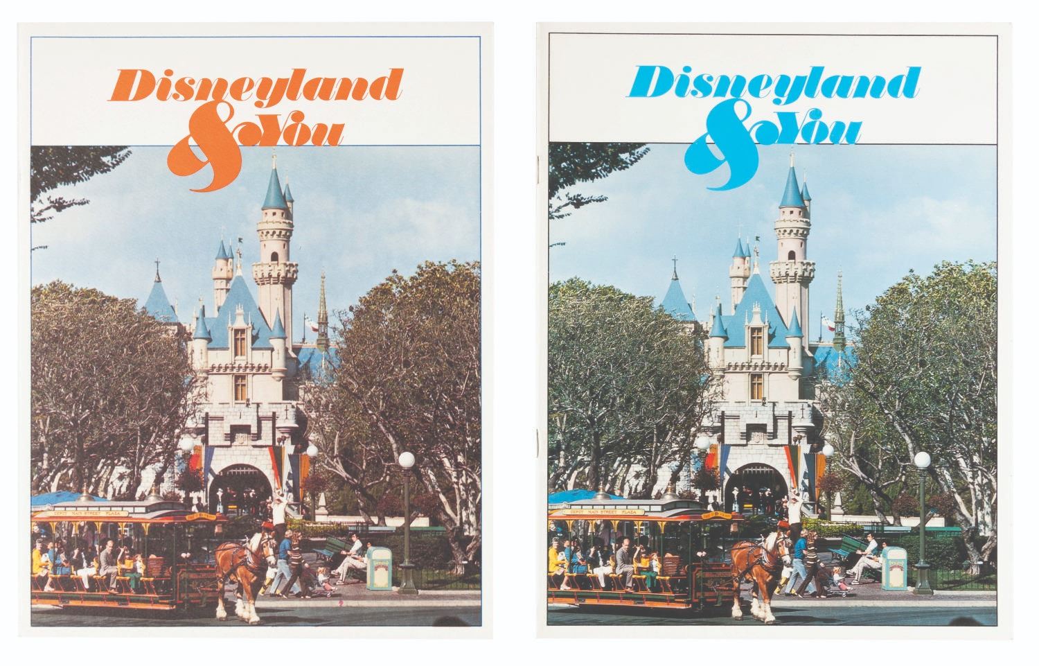 (Disneyland, 1979/1982) Two editions of the orientation booklet issued to new Cast Members titled Disneyland & You. The staple-bound 20-page guide introduces new hires to the"Disney Way" and features reminders on grooming standards, stage presence, company taboos, Cast benefits, activities, and more, with slight differences in content and layout between the two. Each measuring 8.5" x 11", the booklets are in very good condition with very light handling wear.