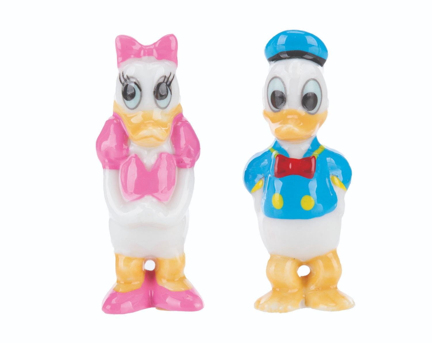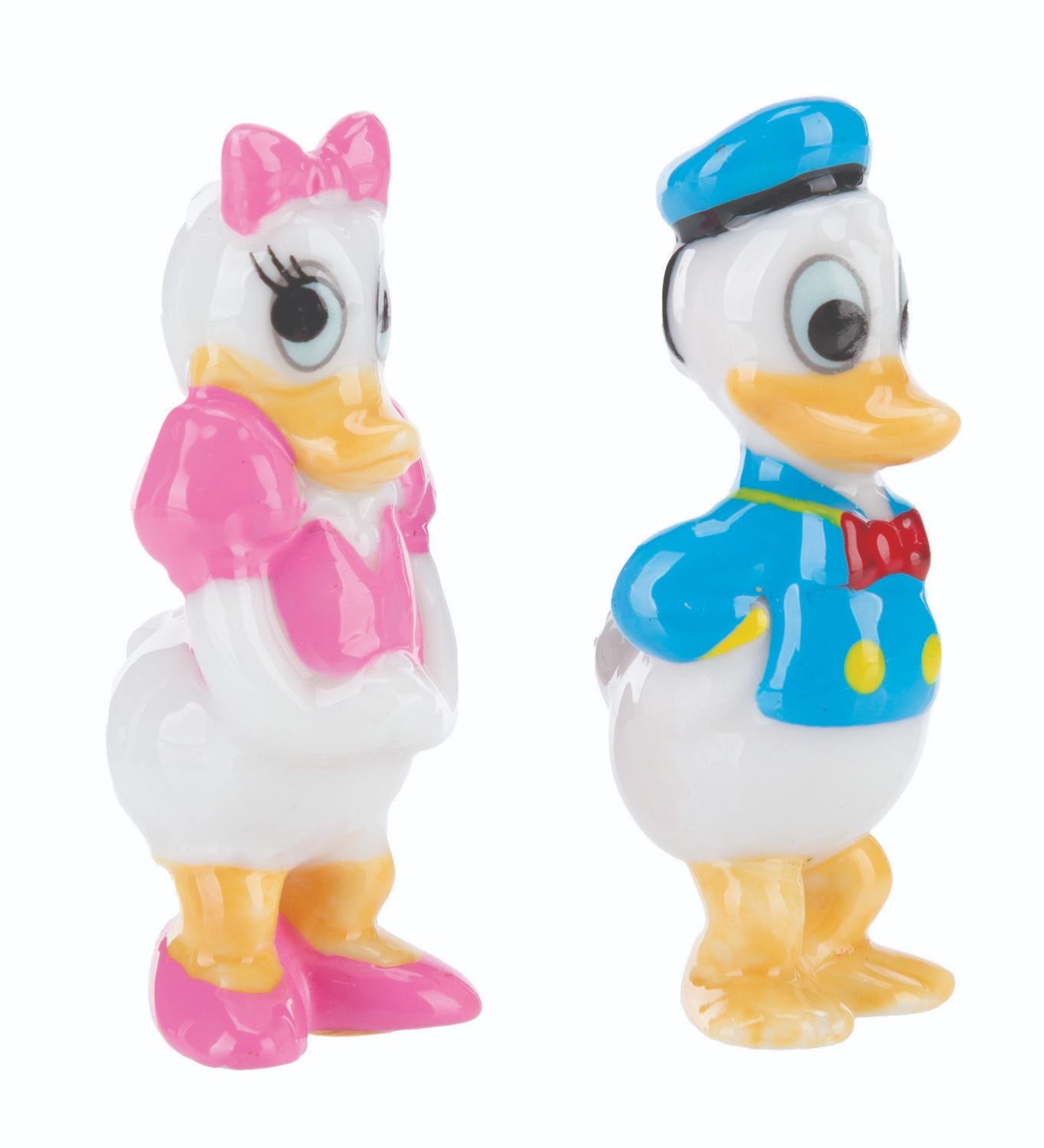 (Disney, 1990s-2000s) A pair of Donald and Daisy Duck ceramic figurines. Measuring 2" tall, the figurines are in fine condition.