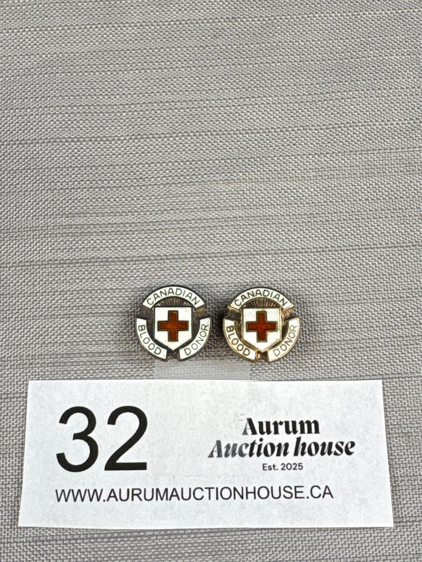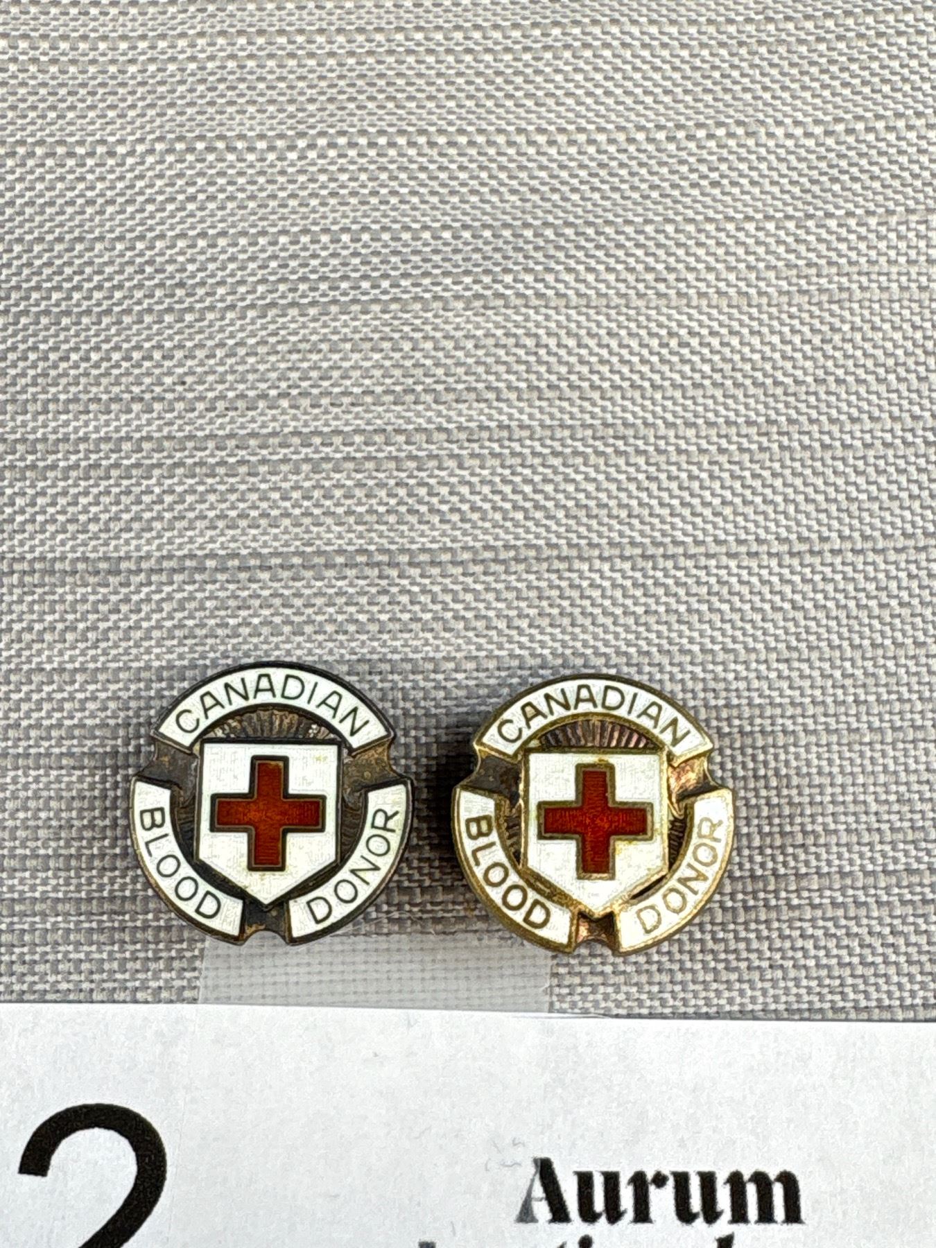 A Pair of Early Canadian Sterling + Enamel Red Cross Badges