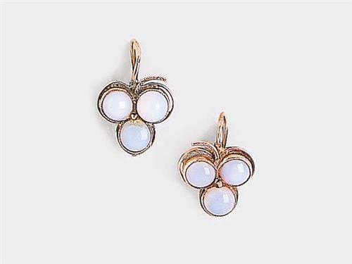 14 K gold, clover shape opal glass decoration, swivel, circa 1930, marked, weight: 2.5 g, restored.