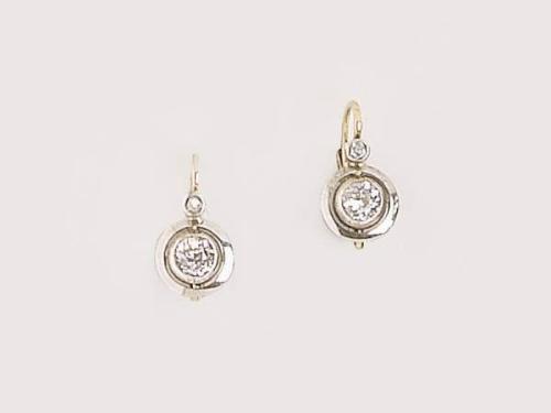 14 K gold, 2 bigger brilliants circa 1.0 ct (R2TCrSi) and 2 smaller brilliants circa 0.08 ct, swivel, weight 3.9 g.